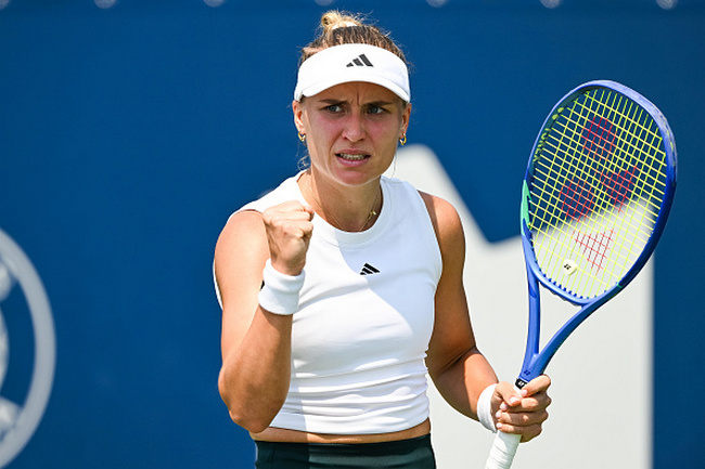 Видно, що Херцог набагато технічніша за Сашу, але поки Саша виіло відповідала. Надіюсь до кінця матча втримається |
