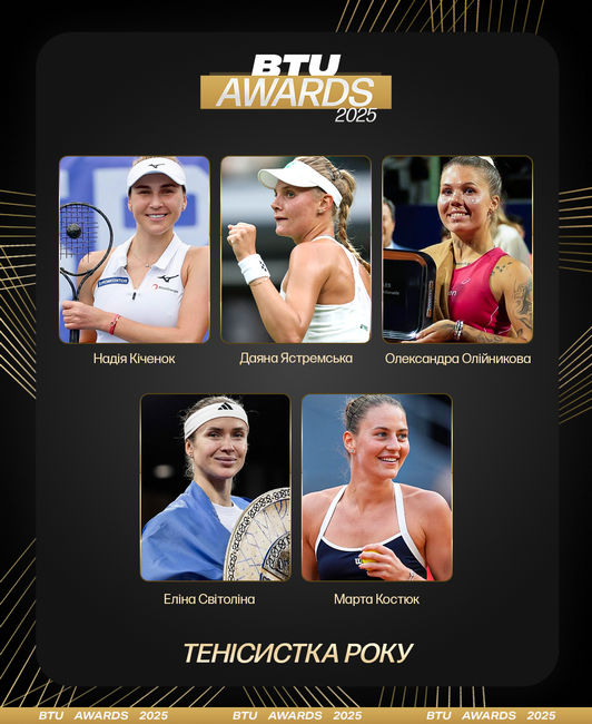 Портал BTU подводит итоги уходящего теннисного годаBTU Awards-2025. Голосуйте за лучших теннисистов Украины в прошедшем сезоне![]() Вспоминаем наши победы и достижения сезона-2025 и выбираем лучших теннисистов года в Украине Портал "Большой теннис Украины" третий год подряд объявляет голосование BTU Awards и мы предлагаем нашим читателям выбрать лучших игроков в четырех номинациях: • Теннисист года • Теннисистка года • Прогресс года • Новое поколение (игроки не старше 20 лет) ❗️ Среди всех участников голосования мы разыграем годовую подписку на спортивную платформу Setanta Sports Проголосовать за наших номинантов можно здесь Голосование продлится до 21 декабря включительно, а результаты мы объявим 25 декабря. ❗️ Подписывайтесь на наш Telegram, чтобы не пропускать главные новости и трансляции матчей с участием украинских теннисистов Теннисист годаПобедители предыдущих лет: 2023: Илья Марченко 2024: Александр Овчаренко ![]() Виталий Сачко 28 лет, рейтинг АТР №169 • В этом году Виталий Сачко сыграл 73 матча, в которых одержал 42 победы. Дважды сыграл в финале турниров серии "челленджер" (Барлетта, Монца), четыре раза дошел до финала на "челленджерах" в парном разряде и завоевал два титула (Манама, Шербур). На соревнованиях АТР 250 в Метце дошел до полуфинала, став первым представителем Украины на этой стадии с 2007 года. Начав год на 417-й строчке мирового рейтинга, завершил его на 169-й позиции. Вячеслав Белинский 22 года, рейтинг АТР №384 • Вячеслав Белинский сыграл в этом сезоне 65 матчей, в которых одержал 48 побед. Сыграл семь финалов на турнирах ITF в одиночном разряде и завоевал четыре титула. Еще два турнира ITF выиграл в парном разряде. В сентябре помог сборной Украины одержать победу в противостоянии Кубка Дэвиса против команды Доминиканской Республики, переиграв Петера Бертрана. Начал 2025 год на 517-й строчке рейтинга АТР, а завершил на 384-м месте, обновив по ходу сезона свой рейтинговый рекорд - №373 АТР. Владислав Орлов 30 лет, рейтинг АТР №495 • В 2025 году Владислав Орлов сыграл 70 матчей и одержал 41 победу. Стал чемпионом двух турниров ITF и еще на одном дошел до финала. В парном раряде Орлов выиграл два титула на "челленджерах" (Брашов, Тампере), три - на турнирах ITF и еще на двух дошел до финала. В сентябре принес два очка сборной Украины в матче Кубка Дэвиса против Доминиканской Республики, обыграв лидера соперника Роберто Сида Суберви, и вместе с Александром Овчаренко выиграв парный поединок. Начал сезон на 608-й строчке рейтинга АТР, а завершил на 495-й позиции. Теннисистка годаПобедительницы предыдущих лет: 2023: Элина Свитолина 2024: Людмила Киченок ![]() Элина Свитолина 31 год, рейтинг WTA №14 • В этом году Элина Свитолина сыграла 51 матч и одержала 36 побед. В апреле, на соревнованиях WTA 250 в Руане выиграла свой 18-й титул WTA в карьере. Дошла до четвертьфинала на Открытом чемпионате Австралии и Ролан Гарросе, а также до полуфинала на турнире WTA 1000 в Мадриде. Одержала четыре победы над соперницами из топ-10 (Паолини-2, Пегула, Анисимова). Помогла сборной Украины впервые квалифицироваться в финальный турнир Кубка Билли Джин Кинг, одержав победы в поединках против представительниц Польши и Швейцарии. В финальном турнире принесла очко нашей команде в четвертьфинале против Испании, обыграв Паулу Бадосу, благодаря чему Украина впервые в истории вышла в полуфинал командного чемпионата мира. Этот сезо