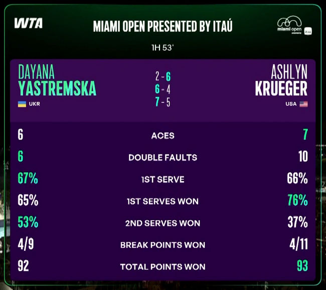 Майами. Ястремская совершила камбэк в матче первого круга против Крюгер