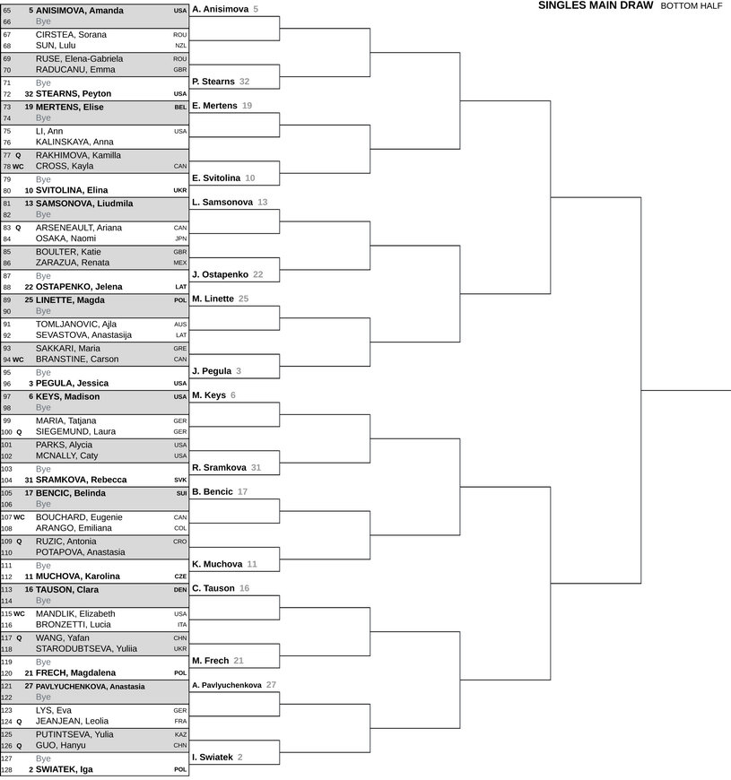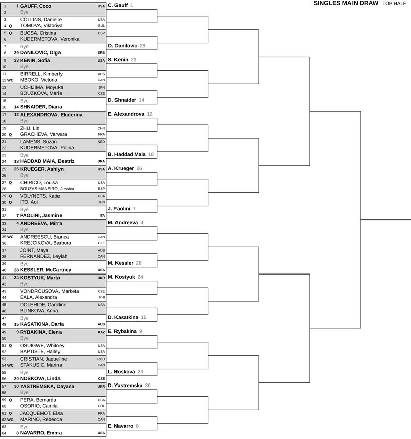 Результаты жеребьевки турнира WTA 1000 в Монреале![]() Omnium National Bank Open presented by Rogers - WTA 1000 Монреаль, Канада • 27 июля - 7 августа • хард • $5,152,599 Действующая чемпионка: Джессика Пегула (США) Сетки турнира: квалификация • одиночный разряд • парный разряд • Открытый чемпионат Канады с 2011 года проходит для мужчин и женщин в одну неделю, чередуясь каждый сезон между двумя городами - Торонто и Монреалем. Женские соревнования пройдут в этом году в 123-й раз (впервые в 1892 году). В Монреале матчи проходят на открытых хардовых кортах комплекса IGA Stadium. • Игры основной сетки стартуют в воскресенье 27 июля. Финальные поединки в одиночном и парном разрядах состоятся в четверг 7 августа. • Официальный мяч турнира - Wilson US Open. • Действующая чемпионка в одиночном разряде: Джессика Пегула (США). Парный титул в прошлом году выиграли: Дезире Кравчик/Кэролайн Доулхайд (США). • Джессика Пегула победила на турнире в Канаде в 2023 и 2024 годах и стала первой, кому удалось защитить свой титул на этих соревнованиях, после Мартины Хингис в 1999-2000 годах. Отметим, что три титула подряд в Канаде выиграла Моника Селеш, которая становилась чемпионкой в период с 1995 по 1998 года. • Рекордсменками соревнований по количеству титулов являются американки Крис Эверт и Моника Селеш, побеждавшие по 4 раза. • В 2017 году титул в Торонто выиграла украинка Элина Свитолина, обыгравшая в финале Симону Халеп. • Из чемпионок прошлых лет в этом сезоне в Берлине сыграют: Джессика Пегула (2023, 2024), Бьянка Андрееску (2019), Элина Свитолина (2017) и Белинда Бенчич (2015). • Украину на турнире представят: Элина Свитолина, Марта Костюк, Даяна Ястремская, Юлия Стародубцева, Людмила Киченок (парный разряд), Надежда Киченок (парный разряд). Одиночный разряд Wild Card от организаторов получили: Бьянка Андрееску (Канада) Эжени Бушар (Канада) Карсон Бранстайн (Канада) Кайла Кросс (Канада) Элизабет Мандлик (США) Ребекка Марино (Канада) Виктория Мбоко (Канада) Марина Стакушич (Канада) Теннисистки топ-30 снявшиеся с турнира №1 Арина Соболенко (-) - усталость №6 Чжэн Циньвэнь (Китай) - травма локтя №10 Паула Бадоса (Испания) - травма спины ТОП-8 сеяных и их соперницы во втором круге (первый раунд пропускают): 1. Коко Гауфф (США) - Даниэль Коллинс (США) / Виктория Томова (Болгария, Q) 2. Ига Швёнтек (Польша) - Юлия Путинцева (Казахстан) / Го Ханьюй (Китай) 3. Джессика Пегула (США) - Карсон Бранстайн (Канада, WC) / Мария Саккари (Греция) 4. Мирра Андреева (-) - Бьянка Андрееску (Канада, WC) / Барбора Крейчикова (Чехия) 5. Аманда Анисимова (США) - Сорана Кырстя (Румыния) / Лулу Сун (Новая Зеландия) 6. Мэдисон Кис (США) - Татьяна Мария (Германия) / Лаура Зигемунд (Германия, Q) 7. Жасмин Паолини (Италия) - Кэти Волынец (США, Q) / Аой Ито (Япония, Q) 8. Эмма Наварро (США) - Эльза Жакемо (Франция, Q) / Ребекка Марино (Канада, WC) Очки и призовые: R1: 10 очков / $12 770 R2: 35 очков / $19 705 R3: 65 очков / $33 000 R4: 120 очков / $56 703 QF: 215 очков / $107 000 SF: 390 очков / $206 100 FR: 650 очков / $391 600 W: 1 000 очков / $752 275 ![]() ![]() Парный разряд *ожидается |