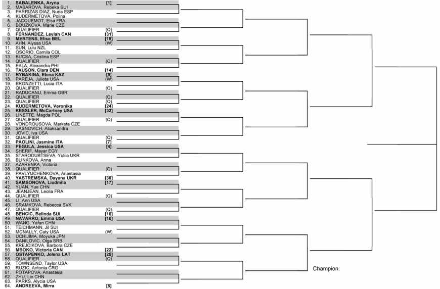 Помимо Соболенко, из победительниц прошлых турниров также сыграют: Коко Гауфф (2023), Ига Швёнтек (2022), Эмма Радукану (2021) и Наоми Осака (2018, 2020).