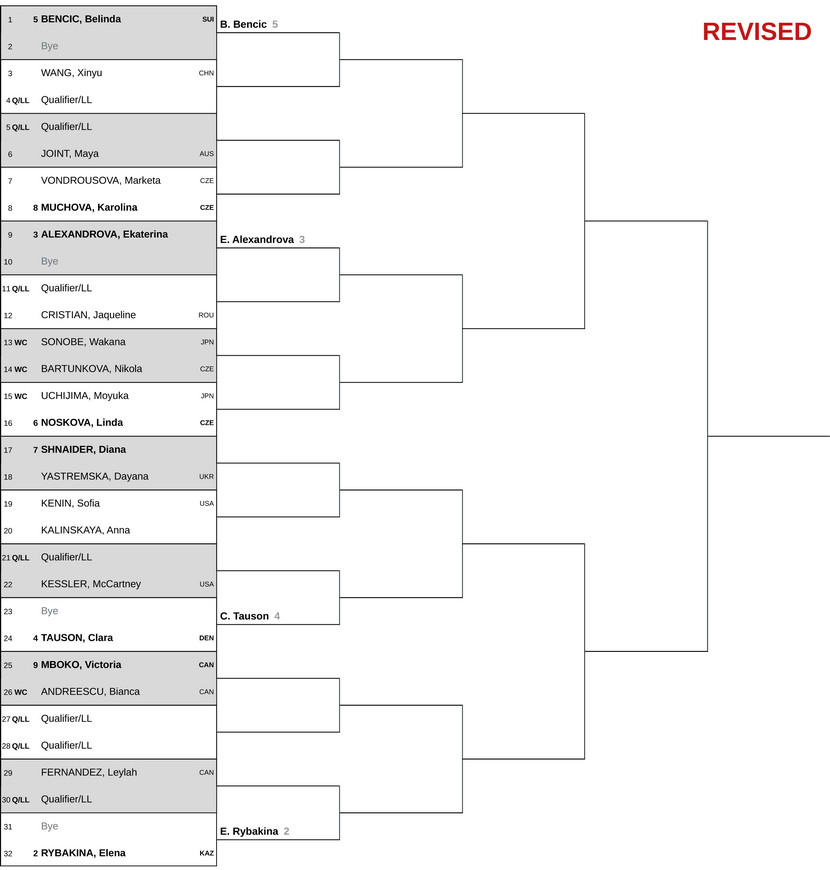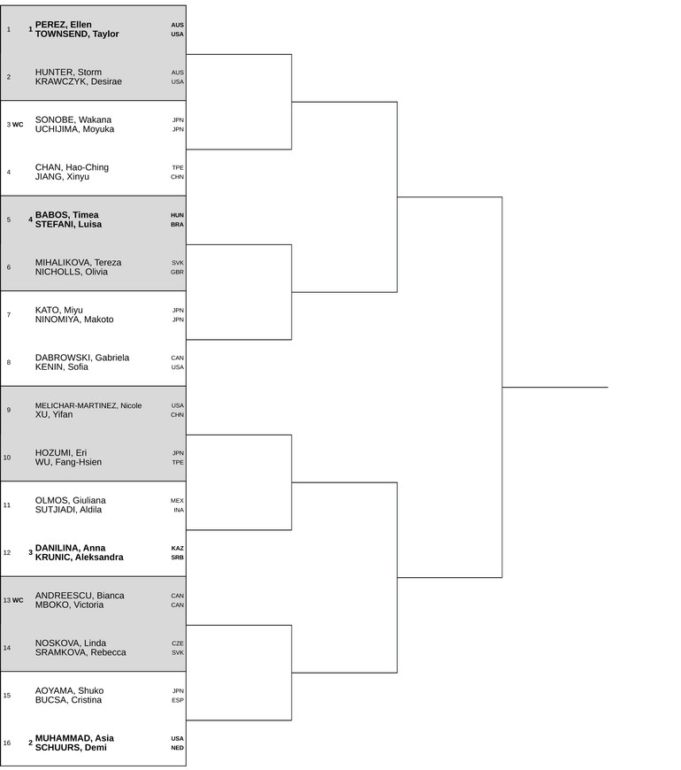 Результаты жеребьевки на турнире WTA 500 в столице Японии![]() Toray Pan Pacific Open Tennis - WTA 500 Токио, Япония • 20-25 октября • хард • $1,064,510 Действующая чемпионка: Чжэн Циньвэнь (Китай) Сетки турнира: квалификация • одиночный разряд • парный разряд • Турнир в Токио проводится с 1973 года. В этом сезоне пройдет 51-й розыгрыш турнира. • Матчи играются на закрытых хардовых кортах комплекса Utsubo Tennis Center. В основной сетке сыграют 28 теннисисток в одиночном разряде и 16 дуэтов в парном. • Матчи основной сетки пройдут с 20 по 26 октября. • Официальный мяч турнира - Yonex Tour Platinum. • Время турнира: разница с Киевом составляет +6 часов. • В прошлом году чемпионкой турнира в одиночном разряде стала Чжэн Циньвэнь из Китая. Титул в парном разряде завоевали японки Сюко Аояма и Эри Ходзуми. • Рекордсменкой турнира по количеству титулов является Мартина Хингис из Швейцарии, выигравшая 5 турниров (1997, 1999, 2000, 2002, 2007). • Последней теннисисткой, защитившей свой титул на соревнованиях в Токио, является датчанка Каролин Возняцки (2016-2017). • В этом году на турнире не сыграет ни одна чемпинка прошлых лет. Одиночный разряд Wild Card от организаторов: Бьянка Андрееску (Канада) Никола Бартунькова (Чехия) Вакана Сонобэ (Япония) Моюка Утидзима (Япония) ТОП-8 сеяных и их соперницы в первом круге: 1. 2. Елена Рыбакина (Казахстан) - BYE 3. Екатерина Александрова (-) - BYE 4. Клара Таусон (Дания) - BYE 5. Белинда Бенчич (Швейцария) - BYE 6. Линда Носкова (Чехия) - Моюка Утидзима (Япония) 7. Диана Шнайдер (-) - Даяна Ястремская (Украина) 8. Каролина Мухова (Чехия) - Маркета Вондроушова (Чехия) 9. Виктория Мбоко (Канада) - Бьянка Андрееску (Канада) Очки и призовые: R1: 1 | $11,300 R2: 60 | $15,700 QF: 108 | $28,695 SF: 195 | $59,000 FR: 325 | $101,000 W: 500 | $164,000 ![]() Парный разряд Wild Card от организаторов: Бьянка Андрееску/Виктория Мбоко (Канада) Вакана Сонобэ/Моюка Утидзима (Япония) ТОП-4 сеяных и их соперницы в первом круге: 1. Эллен Перес/Тэйлор Таунсенд (Австралия/США) - Сторм Хантер/Дезире Кравчик (Австралия/США) 2. Эйша Мухаммед/Деми Схюрс (США/Нидерланды) - Сюко Аояма/Кристина Букша (Япония/Испания) 3. Анна Данилина/Александра Крунич (Казахстан/Сербия) - Джулиана Олмос/Алдила Сутджиади (Мексика/Индонезия) 4. Тимеа Бабош/Луиза Стефани (Венгрия/Бразилия) - Тереза Михаликова/Оливия Николлс (Словакия/Великобритания) Очки и призовые: R1: 1 | $6,000 QF: 108 | $9,840 SF: 195 | $19,160 FR: 325 | $33,000 W: 500 | $54,300
