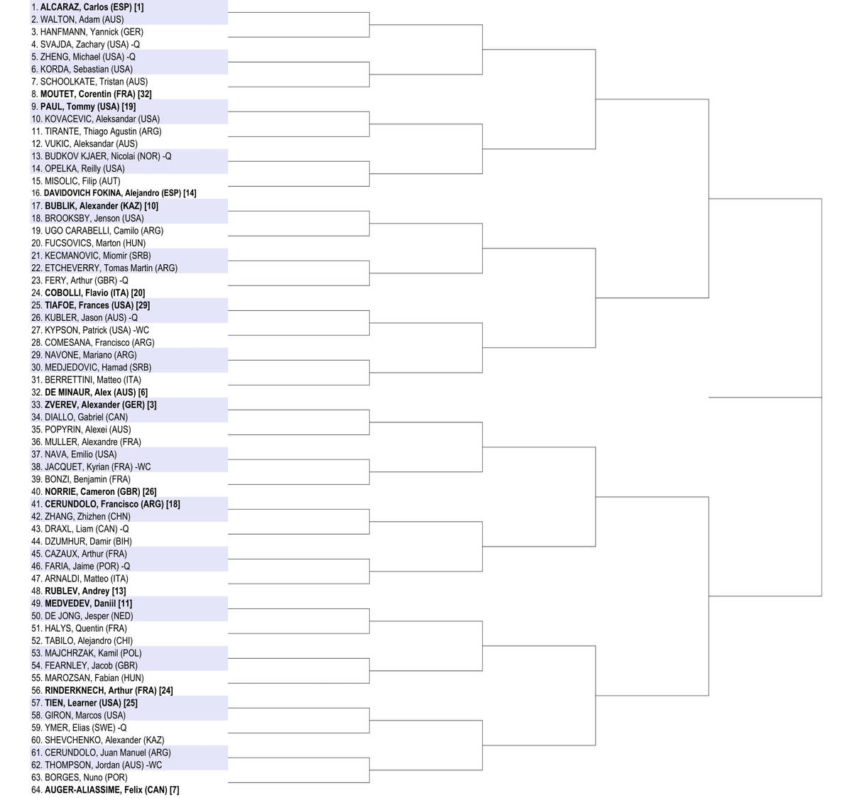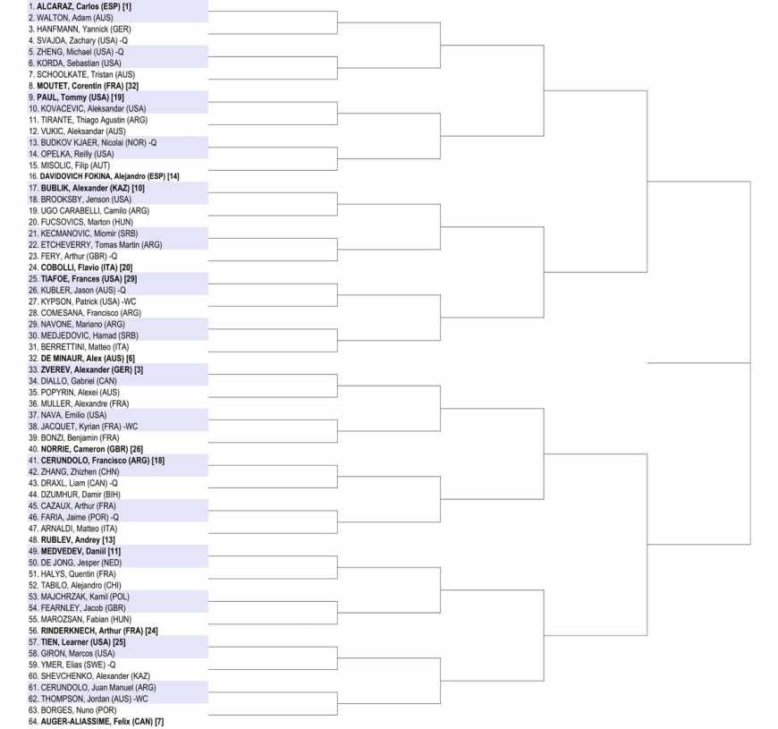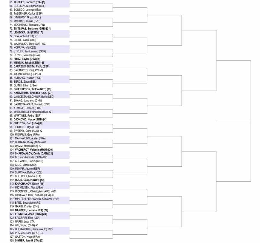 В воскресенье 18 января в Мельбурне стартует Открытый чемпионат Австралии Australian Open-2026. Даты, игроки, призовые и все, что нужно знать о первом "мэйджоре" сезона![]() Даты турнира и место проведения • В этом году соревнования в Мельбурне пройдут с 18 января по 1 февраля на открытых хардовых кортах спортивного комплекса Melbourne Park. Это будет уже 114-й розыгрыш турнира (впервые состоялся в 1905 году), а в Открытой эре - 58-й. • В основной сетке соревнований играют по 128 теннисистов и теннисисток в одиночном разряде и по 64 команды в парном. • Турнирный мяч - Dunlop АО • Разница во времени с Киевом - +9 часов. • Игры основной сетки стартуют в воскресенье 18 января. Женский финал в одиночном разряде будет сыгран в субботу 31 января. Финал в одиночном разряде у мужчин пройдет 1 февраля. Оба парных финала будут сыграны в субботу - 31 января. Финал турнира в смешанном парном разряде состоится в пятницу 30 января. >>> Главные новости Australian Open в Telegram Какой формат матчей Мужской турнир: пятисетовые матчи, в решающем сете тай-брейк до 10 очков при счете 6:6. Женский турнир: трехсетовые матчи, в решающем сете тай-брейк до 10 очков при счете 6:6. Парный турнир: трехсетовые матчи, в решающем сете тай-брейк до 10 очков при счете 6:6. Сеяные игроки и их соперники (ТОП-16) МУЖСКОЙ ТУРНИР 1. Карлос Алькарас (Испания) - Адам Уолтон (Австралия) 2. Янник Синнер (Италия) - Уго Гастон (Франция) 3. Александр Зверев (Германия) - Габриэль Диалло (Канада) 4. Новак Джокович (Сербия) - Педро Мартинес (Испания) 5. Лоренцо Музетти (Италия) - Рафаэль Колиньон (Бельгия) 6. Алекс де Минор (Австралия) - Маттео Берреттини (Италия) 7. Феликс Оже-Альяссим (Канада) - Нуну Боржеш (Португалия) 8. Бен Шелтон (США) - Уго Умбер (Франция) 9. Тэйлор Фритц (США) - Валентен Ройер (Франция) 10. Александр Бублик (Казахстан) - Дженсон Бруксби (США) 11. Даниил Медведев (-) - Йеспер де Йонг (Нидерланды) 12. Каспер Рууд (Норвегия) - Маттиа Беллуччи (Италия) 13. Андрей Рублев (-) - Маттео Арнальди (Италия) 14. Алехандро Давидович Фокина (Испания) - Филип Мисолич (Австрия) 15. Карен Хачанов (-) - Алекс Микельсен (США) 16. Якуб Меншик (Чехия) - Пабло Карреньо Буста (Испания) ЖЕНСКИЙ ТУРНИР 1. Арина Соболенко (-) Тиантцоа Ракотоманга Раджаона (Франция, WC) 2. Ига Швёнтек (Польша) - Юань Юэ (Китай) 3. Коко Гауфф (США) - Камилла Рахимова (Узбекистан) 4. Аманда Анисимова (США) - Симона Вальтерт (Швейцария) 5. Елена Рыбакина (Казахстан) - Кайя Юван (Словения) 6. Джессика Пегула (США) - Анастасия Захарова (-) 7. Жасмин Паолини (Италия) - Александра Саснович (-, Q) 8. Мирра Андреева (-) - Донна Векич (Хорватия) 9. Мэдисон Кис (США) - Александра ОЛЕЙНИКОВА (Украина) 10. Белинда Бенчич (Швейцария) - Кэти Бултер (Великобритания) 11. Екатерина Александрова (-) - Зейнеп Сонмез (Турция, Q) 12. Элина СВИТОЛИНА (Украина) - Кристина Букша (Испания) 13. Линда Носкова (Чехия) - Дарья Семенистая (Латвия) 14. Клара Таусон (Дания) - Далма Галфи (Венгрия) 15. Эмма Наварро (США) - Магда Линетт (Польша) 16. Наоми Осака (Япония) - Антония Рузич (Хорватия) Кто сыграет из предыдущих чемпионов? МУЖСКОЙ ТУРНИР Действующим чемпионом соревнований является Янник Синнер, который выиграл эти соревнования также в 2024 году. Помимо него на турнире выступят победители прошлых лет: Новак Джокович, который выигрывал соревнования рекордные 10 раз (2008, 2011-2013, 2015, 2016, 2019-2021, 2023) и Стэн Вавринка (2014). ЖЕНСКИЙ ТУРНИР В прошлом году титул в Мельбурне выиграла Мэдисон Кис. Из чемпионок прошлых лет 