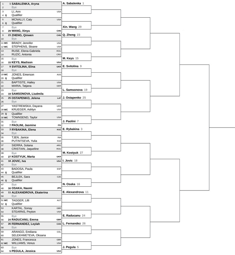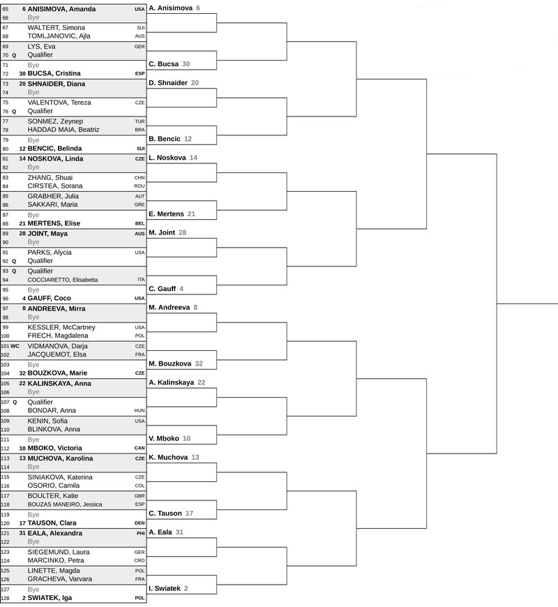 Результаты жеребьевки на турнире WTA 1000 в США![]() Miami Open - WTA 1000 Майами, США • 17-29 марта • хард • $9,415,725 Действующая чемпионка: Арина Соболенко (-) Сетки турнира: квалификация • одиночный разряд • парный разряд • Женский турнир в Майами впервые был проведён в 1985 году (чемпионкой стала Мартина Навратилова). С 2009 года соревнования относятся к категории Premier Mandatory. В этом году состоится 41-й розыгрыш турнира. • Матчи турнира проходят на открытых хардовых кортах стадиона «Хард-Рок» - домашней арене команды НФЛ «Miami Dolphins». • Официальный мяч турнира - Dunlop Grand Prix. • Игры основной сетки стартуют во вторник 17 марта. Финальные матчи в одиночном и парном разрядах состоятся в воскресенье - 29 марта. • В прошлом году одиночный титул в Майами выиграла Арина Соболенко (-), а парный трофей завоевали Мирра Андреева (-) и Диана Шнайдер (-). • Серена Уильямс (CША) является рекордсменкой соревнований по количеству выигранных титулов - 8. • Последней теннисисткой, кому удалось защитить свой титул в Майами была австралийка Эшли Барти в 2019 та 2021 годах (в 2020 году турнир не проводился из-за пандемии коронавируса). • Из чемпионок прошлых лет в этом сезоне в Майами выступят: Арина Соболенко (2025), Ига Швёнтек (2022) и Слоан Стивенс (2018). • Украину на турнире представят: Элина Свитолина, Марта Костюк, Даяна Ястремская и Людмила Киченок (парный разряд). Юлия Стародубцева стартует в квалификации. Одиночный разряд Wild card от организаторов получили: Дженнифер Брэйди (США) Эмерсон Джонс (Австралия) Эшлин Крюгер (США) Слоан Стивенс (США) Лилли Таггер (Австрия) Тэйлор Таунсенд (США) Дарья Видманова (Чехия) Винус Уильямс (США) ТОП-8 сеяных и их возможные соперницы во втором круге: 1. Арина Соболенко (-) - Ли Энн (США) или "квалифаер" 2. Ига Швёнтек (Польша) - Магда Линетт (Польша) или Варвара Грачева (Франция) 3. Елена Рыбакина (Казахстан) - Джанис Тджен (Индонезия) или Юлия Путинцева (Казахстан) 4. Коко Гауфф (США) - Элизабетта Коччаретто (Италия) или "квалифаер" 5. Джессика Пегула (США) - Франческа Джонс (Великобритания) или Винус Уильямс (США) 6. Аманда Анисимова (США) - Симона Вальтерт (Швейцария) или Айла Томлянович (Австралия) 7. Жасмин Паолини (Италия) - Тэйлор Таунсенд (США) или "квалифаер" 8. Мирра Андреева (-) - Маккартни Кесслер (США) или Магдалена Френх (Польша) Очки и призовые: R1: 10 очков / $24,335 R2: 35 очков / $36,110 R3: 65 очков / $61,865 R4: 120 очков / $105,720 QF: 215 очков / $193,645 SF: 390 очков / $340,190 FR: 650 очков / $612,340 W: 1000 очков / $1,151,380 ![]() ![]() Парный разряд *ожидается |