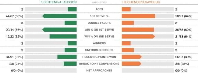 Ольга Савчук / Людмила Киченок (Украина) — Кики Бертенс (Нидерланды) / Йоханна Ларссон (Швеция) 6:4, 7:6 (5)
