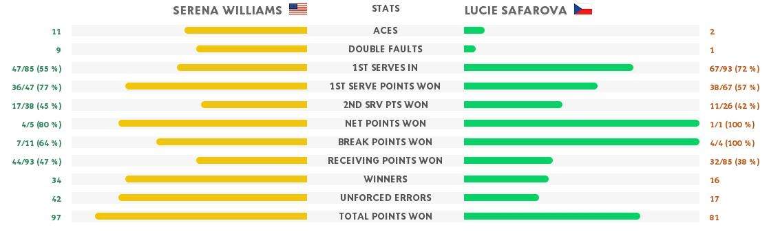 Но на этом и закончился успех представительницы Чехии в финале. Уильямс вновь демонстрирует свой класс и выигрывает сразу шесть геймов подряд.