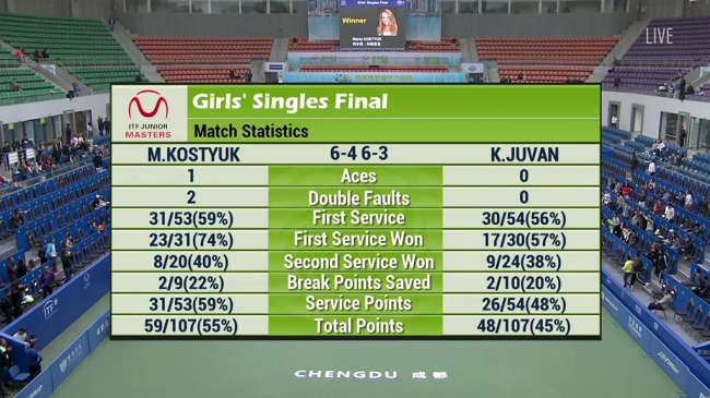 Марта Костюк (Украина) — Кайя Юван (Словения) 6:4, 6:3