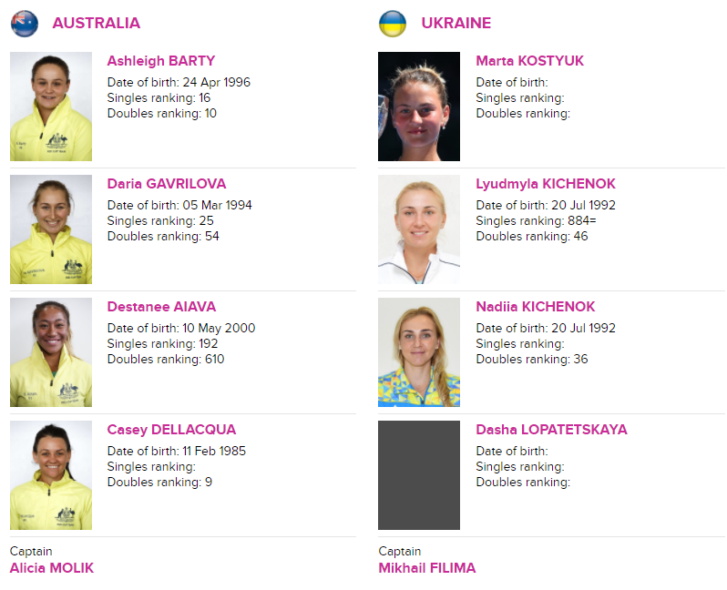 Зрозуміло що у топ тенісисток щільний графік, і що за гру у збірній вони майже не отримають коштів, у порівнянні із звичайними турнирами. Нажаль це загальна проблема. Але це дає шанс проявити себе більш голодним до матчів за збірну тенісисткам. 15 річна Костюк та 14 річна Лопатецька хоч і мають вже чимало досягненнь, звісно мають ще багато чому навчитися у дорослому тенісі, а суперниці набагато вище у рейтингу. Але буде дуже приємно якщо хоча б одна з цих наших молодих дівчат виграє хоча б 1 матч. А загальна перемога це взагалі мрія на даний момент!