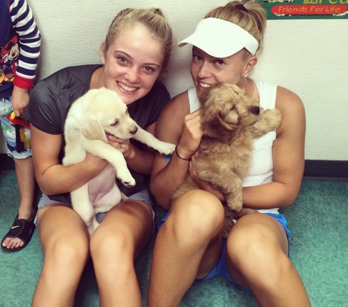 На 14 корте – натуральная блондинка Кэти Суон (5) и почти брюнетка Александра Поспелова. У эйвончанки, давно живущей в долине Миссури вполне нормальный теннисный рост (примерно 175 см). А вот россиянка заметно выше. По этому показателю американская англичанка конкурировать уже не сможет.