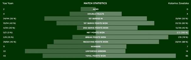 Катарина Завацкая (Украина) — Юань Юэ (Китай) 6:0, 6:3