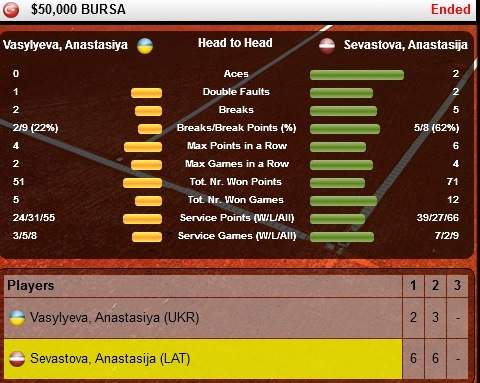 Анастасия Васильева (Украина) — Анастасия Севастова (Латвия) 2-6 3-6