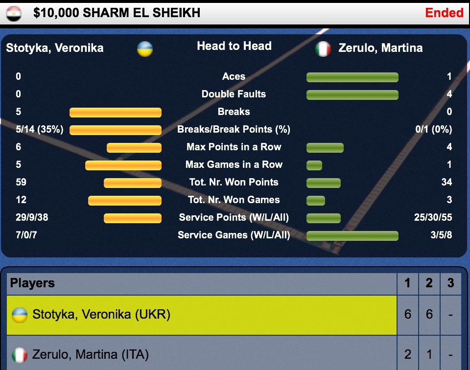 Вероника Стотыка (Украина) — Мартина Дзеруло (Италия) 6-2 6-1
