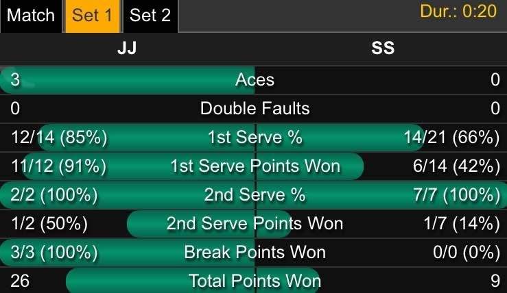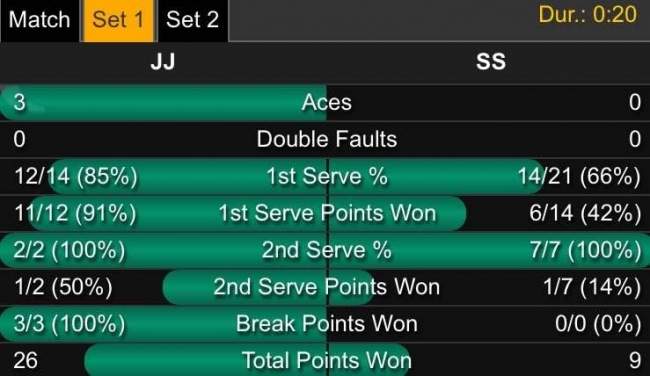 Ежи Янович уже со стартовых минут матча играл активно и практически без ошибок. Польский теннисист действовал уверенно не только на своей подаче, но и агрессивно отвечал на приеме. Как следствие — 6:1 в первом сете.