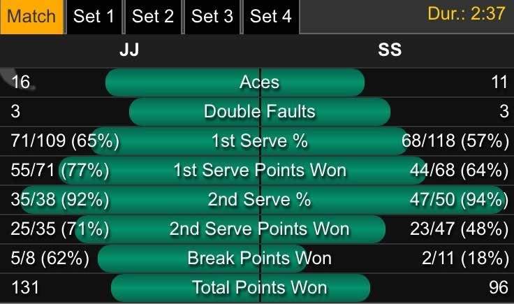 Целых семь брейкпоинтов не смог реализовать Сергей Стаховский на старте четвертого сета. Сохраненная подача придала уверенности Ежи Яновичу и поляк заиграл так же активно, как и в начале матча. Единственный брейк помогает Яновичу выиграть поединок против Сергея Стаховского, а с ним — и матчевое противостояние со сборной Украины.