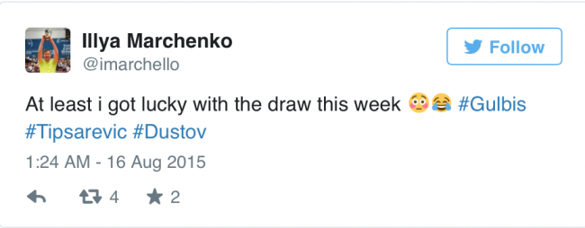 Сам Илья, с юмором прокомментировал в твиттере жеребьевку турнира