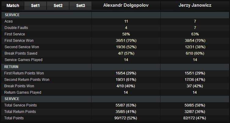 Александр Долгополов (Q, Украина) — Ежи Янович (Польша) 6-3 3-6 6-4