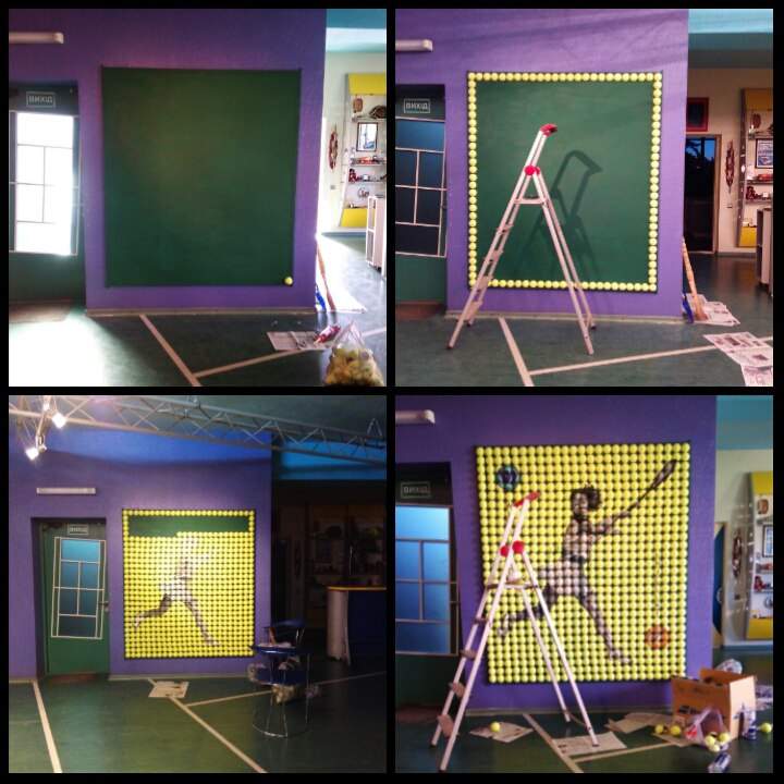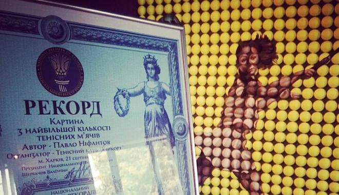 Харьковчанин Павел Нифантов создал первую в Украине картину из теннисных мячей. На работу ушло около месяца. Поверхность картины состоит из 700 мячиков, а изображение теннисистки выполнено акриловыми красками.