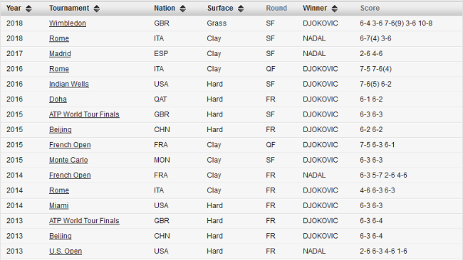 В общей статистике у Джоковича преимущество 27-25. В последний раз Новак и Рафа встречались на корте на Уимблдоне-2018 в ½ финала, где в двухдневном противостоянии выиграл Джокович (10-8 в пятой партии).