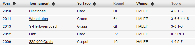 В протистоянні з Халеп перспективи Лесі туманні, поки що повне домінування Халеп, 5-0…