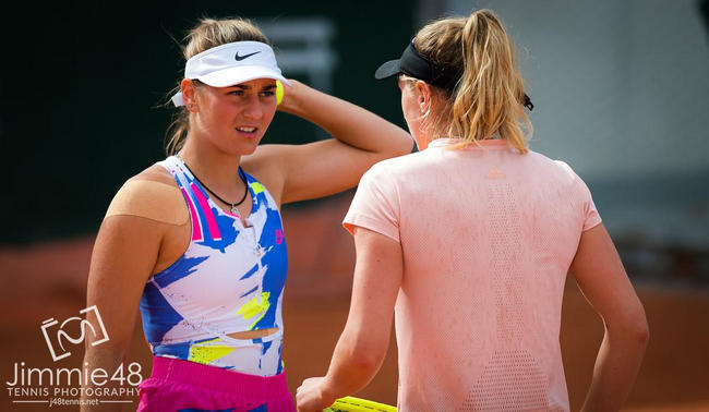 Марта Костюк/Александра Саснович (Украина/Беларусь) Моника Никулеску/Елена Остапенко (Румыния/Латвия, 12) 0-6, 3-6