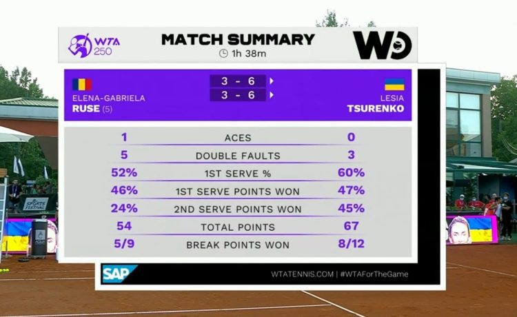 Встреча продолжалась 1 час и 38 минут. Цуренко оформила 8 брейков, а на подаче проиграла 5 геймов. Во втором раунде Леся Цуренко сыграет с одной из победительниц матча между квалифайерами (отборочный этап турнира все еще продолжается).