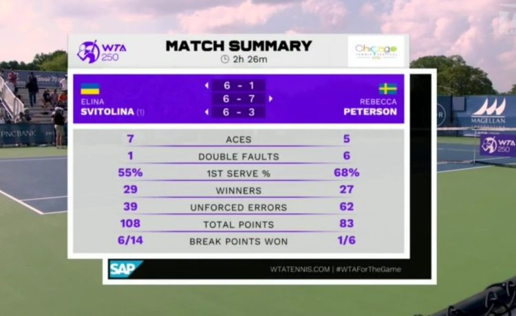 Элина Свитолина (Украина, 1/WC) — Ребекка Петерсон (Швеция) 6-1, 6-7(4), 6-3