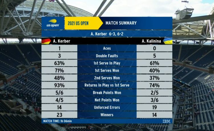 Напомним, что этот поединок не состоялся вчера из-за экстремальных погодных условий в Нью-Йорке. Ранее в этом году Калинина обыграла Кербер на Ролан Гаррос.