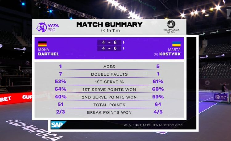 Марта Костюк (Украина, 6) — Мона Бартель (Германия) 6-4, 6-4