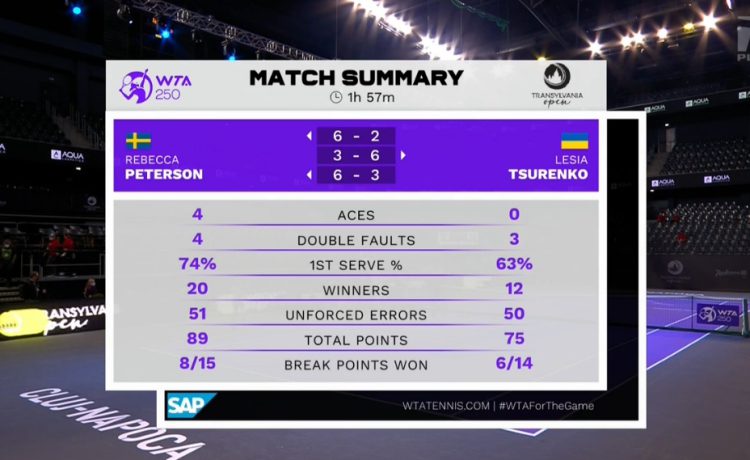 Теннисистки провели на корте почти 2 часа. В решающем сете Цуренко выполнила один брейк, а на своей подаче проиграла три гейма.