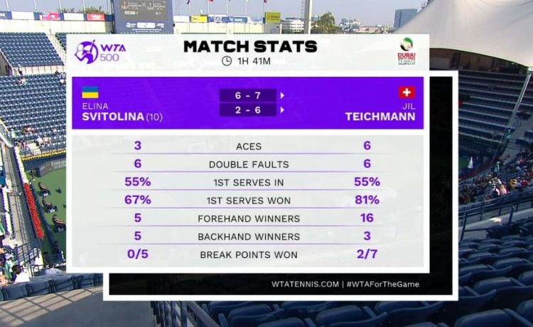 Дубай. Свитолина покидает турнир после матча с Тайхманн