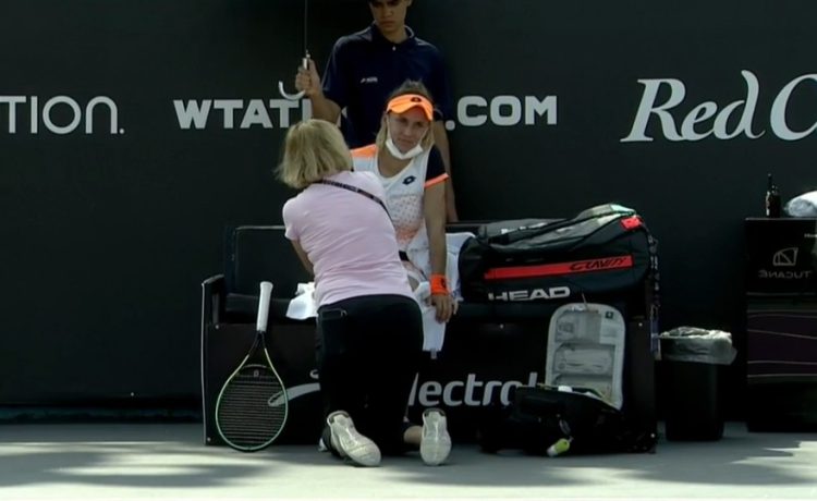 Украинка по ходу встречи обращалась к физио из-за проблем с правой рукой и в итоге решила не продолжать борьбу.