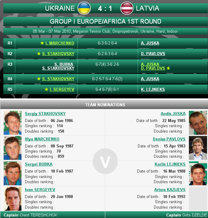 Победа Сергея Стаховского приносит нашей команде третье очко и общую победу в этой встрече. В мае 2010 года украинцев ждет противостояние с румынами.