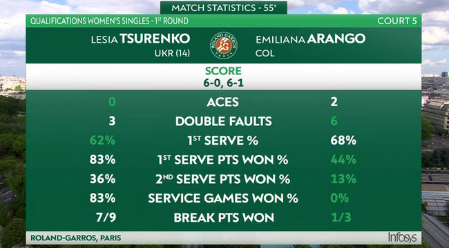 Леся Цуренко (Украина, 14) — Эмилиана Аранго (Колумбия) 6:0, 6:1