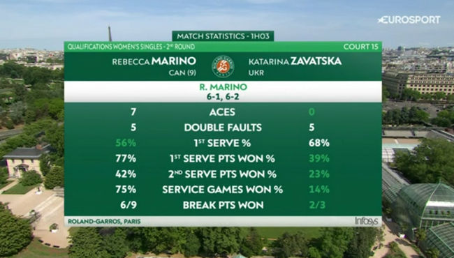 Катарина Завацкая (Украина) — Ребекка Марино (Канада, 9) 1:6, 2:6