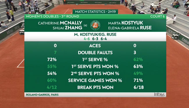 Марта Костюк/Елена-Габриэла Русе (Украина/Румыния) — Кэтрин Макнелли/Чжан Шуай (США/Китай, 4) 4:6, 6:3, 6:4