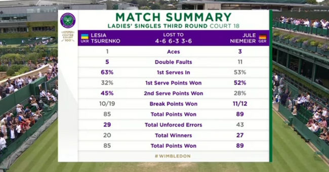 Украинка впервые за пять лет сыграла в третьем круге на Уимблдоне. Тогда в 2017 году она также проиграла на данной стадии. Нимайер, в свою очередь, впервые в карьере вышла в четвёртый раунд на турнирах Большого Шлема. Следующая соперница немки определится по итогам встречи Хезер Уотсон — Кайя Юван.
