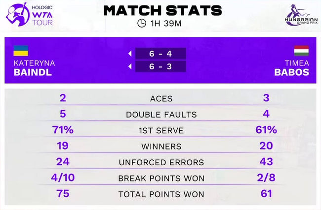 Катерина Байндл (Украина, Q) — Тимеа Бабош (Венгрия, WC) 6:4, 6:3