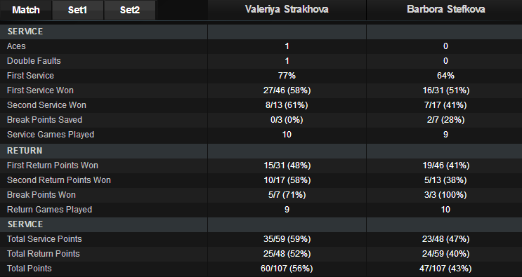 Валерия Страхова (Украина) — Барбора Штефкова (Чехия) 6-3 6-4