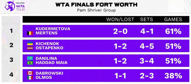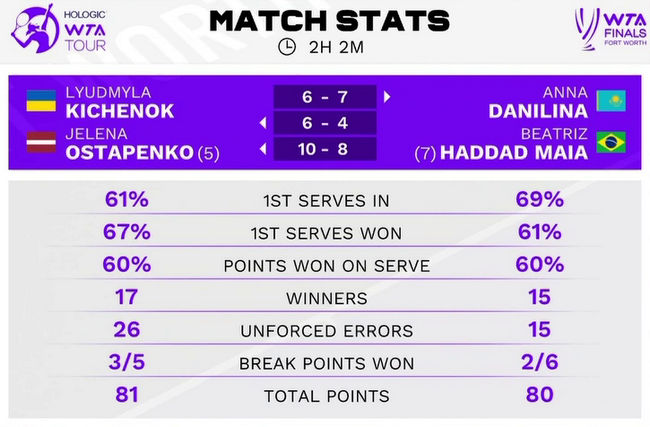 Это первая победа Людмилы и Елены в их дебютном выступлении на WTA Finals.