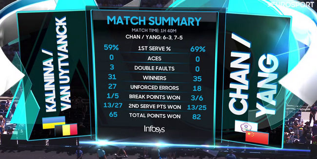 Ангелина Калинина/Алисон ван Эйтванк (Украина/Бельгия) — Чжань Хаоцин/Ян Чжаосюань (Китайский Тайбэй/Китай, 11) 3:6, 5:7