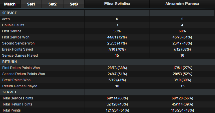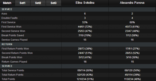 Элина Свитолина (Украина, 1) — Александра Панова (Россия) 5-7 6-1 6-7 (6)