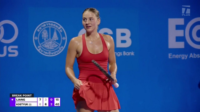 После неудачного первого сета украинка уступала во втором со счётом 1:3, после чего выиграла 11 геймов подряд. Следующей соперницей Костюк станет Нао Хибино из Японии.