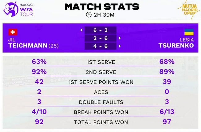 Украинка занимает 77-е место в мировом рейтинге и во второй раз в этом году обыграла теннисистку из топ-30. В марте Леся была сильнее Донны Векич на турнире WTA 250 в Монтеррее.
