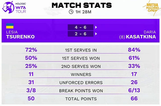 Цуренко в пятый раз сыграла против Касаткиной (впервые на грунтовом покрытии) и потерпела третье поражение. Их предыдущая встреча состоялась в 2018 году.