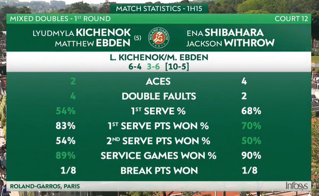 Людмила Киченок/Мэттью Эбден (Украина/Австралия, 5) — Эна Сибахара/Джексон Уитроу (Япония/США) 6:4, 3:6, 10-5