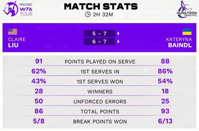 Напомним, это был второй матч для Байндл за сегодня. Ранее она обыграла венгерку Фанни Штоллар в четвертьфинале. В целом за день украинская теннисистка провела на корте четыре с половиной часа.