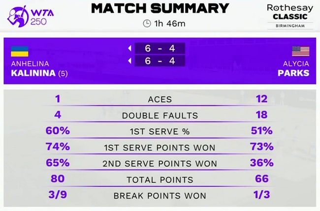 Ангелина Калинина (Украина, 5) — Алиша Паркс (США) 6:4, 6:4