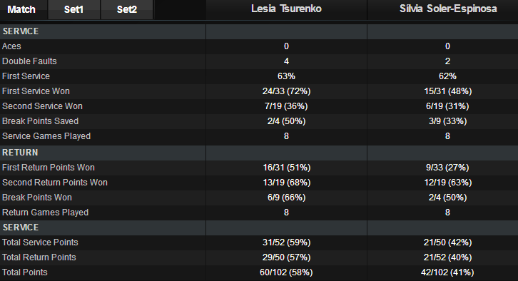 В первом круге Леся Цуренко отдала сопернице только четыре гейма.