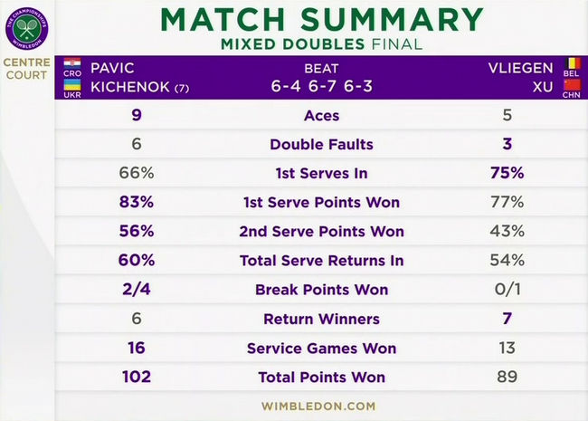 Отметим, Павич пятый раз сыграл в финале микста и праздновал третью победу. В 2016 году хорват вместе с Лаурой Зигемунд (Германия) выиграл титул на US Open, а в 2018 году стал чемпионом на Australian Open с Габриэлой Дабровски (Канада). Вместе с канадкой Мате также дважды играл в финале Ролан Гаррос (2018, 2019). Павич также три раза становился победителем в парной сетке турниров Grand Slam, в том числе на Уимблдоне два года назад.