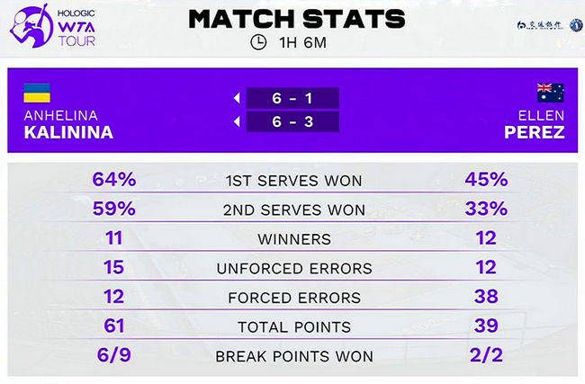 Ангелина Калинина (Украина) — Эллен Перес (Австралия, Q) 6:1, 6:3